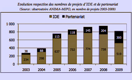 Durant cette année de crise, le Maroc a réussi d’une certaine manière à tirer son épingle du jeu. S’il enregistre une baisse proche de la moyenne régionale en termes de nombre de projets, il a très bien résisté en termes de flux nets : les montants sont passés de 2 milliards d’euros en 2008 à 3,3 milliards en 2009. Un résultat attribué au volontarisme industriel du pays qui n’a pas hésité à associer la Caisse de dépôt et de gestion, ce mastodonte, dans des joint-ventures pour différents projets stratégiques.
