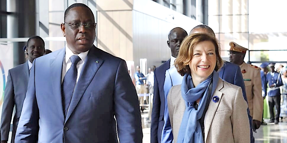 Le président sénégalais Macky Sall en compagnie de Florence Parly, ministre française de la Défense, lors du Ve Forum de Dakar sur la paix et la sécurité en Afrique. © DR
