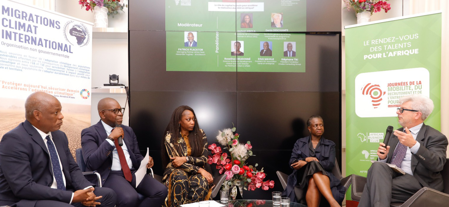 Jeunesse, capital humain et développement durable (ODD – objectifs du développement durable) : tel était le thème du débat organisé le 22 octobre 2025 à Paris, au cabinet ASAFO & Co, devant un large public, par l’ONG Migrations & Climat International avec ses partenaires African Business Club (ABC) et Afrisearch, dans le cadre des JMREA – Journées de la mobilité, du recrutement et de l’entrepreneuriat pour l’Afrique, entre le Forum AMID de l’ABC (18/10/2025 à l’ESCP Business School) et le Forum AfriqueTalents d’Africsearch (24/10/2025 au Cnit de la Défense) .